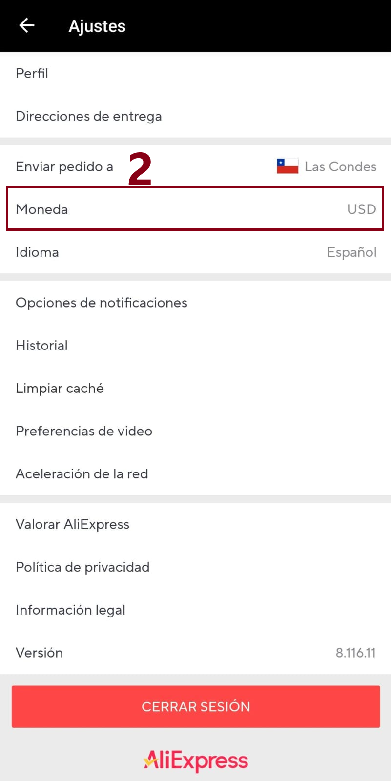 Cambiar AliExpress chile en peso chileno desde la app.